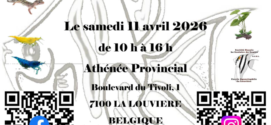 Bourse aquariophile et reptiles du Scalaire du Centre0 h 00 min - 0 h 00 minBourse aquariophile et reptiles du Scalaire du Centre le 11 avril 2026 de 10h à16h Athenée Provincial