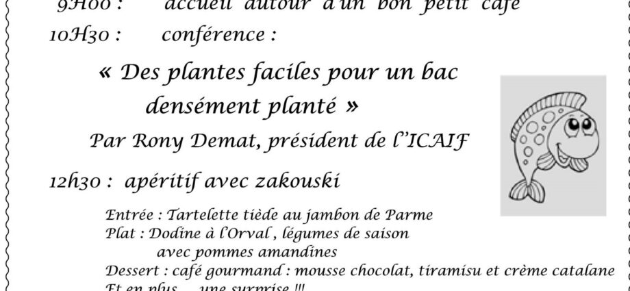 5ème journée aquariophile du Botia club de Mons9 h 00 min - 17 h 00 minConférences et repas Salle 'le Comptoir des Anges'