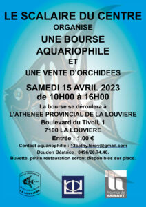 2023-04-15Bourse du Scalaire du CentreUntil 16 h 00 minLa Louvière, Boulevard du Tivoli,1 MapBourses aquariophiles 2025-11-28